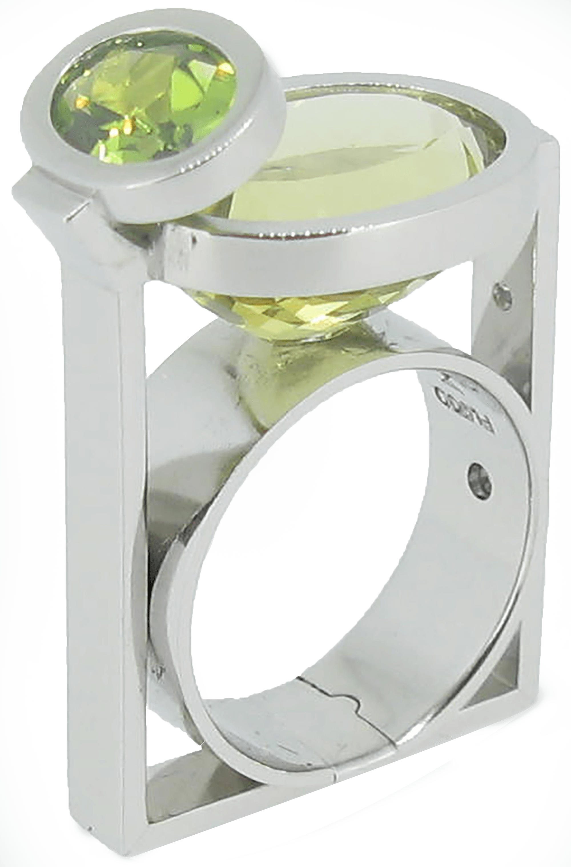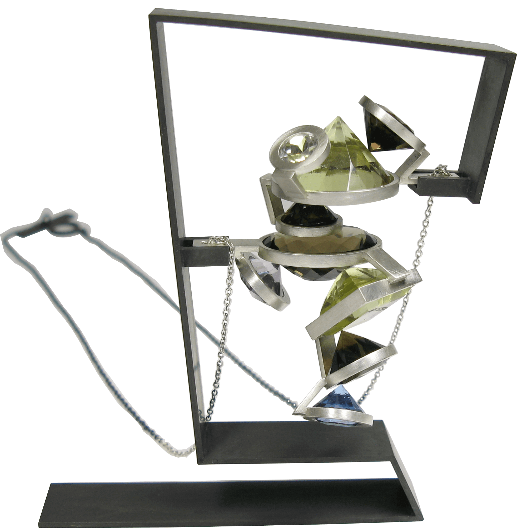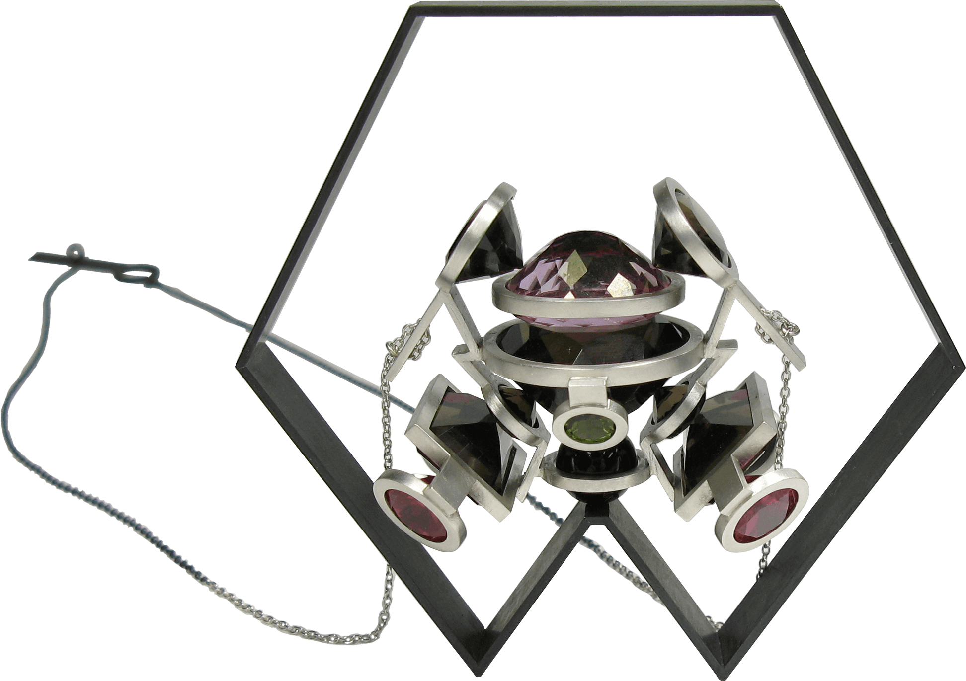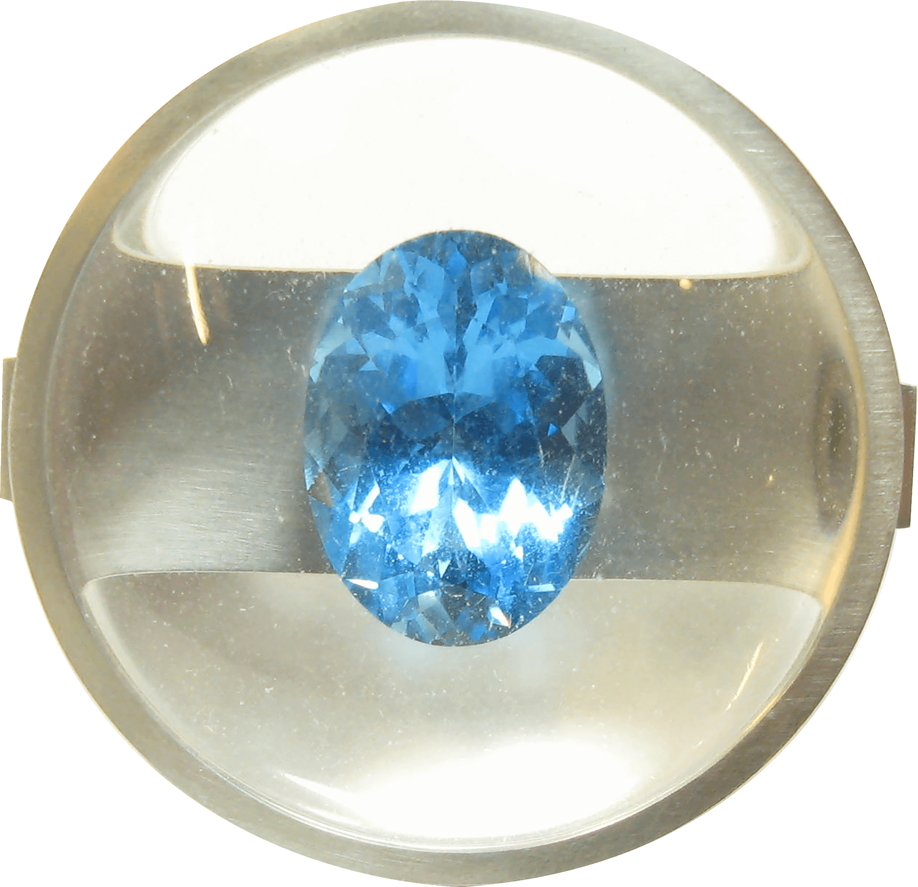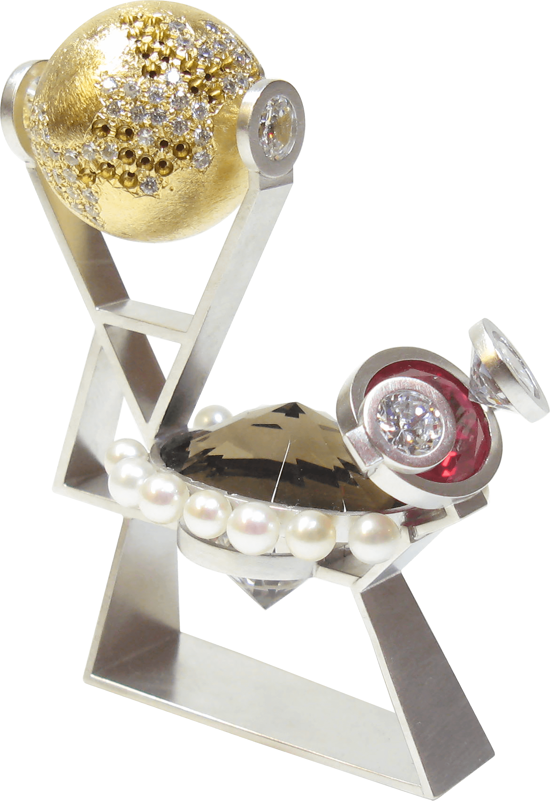 - silver, cubic zirconia, blue glass, synthetic ruby, synthetic pink sapphire