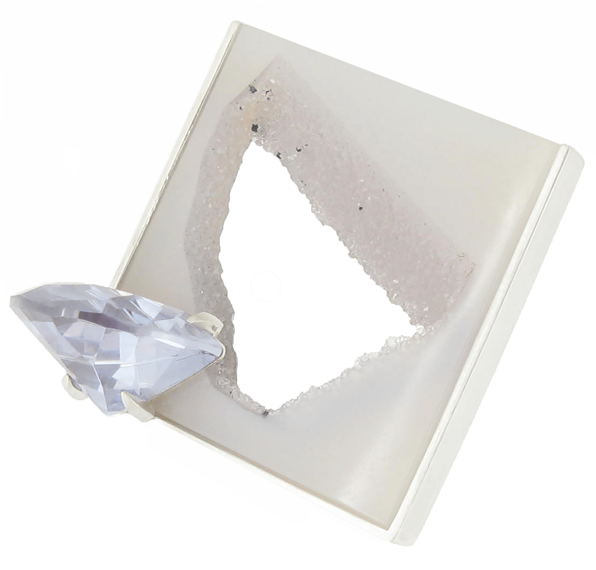 - silver, cubic zirconia, blue glass, synthetic ruby, synthetic pink sapphire